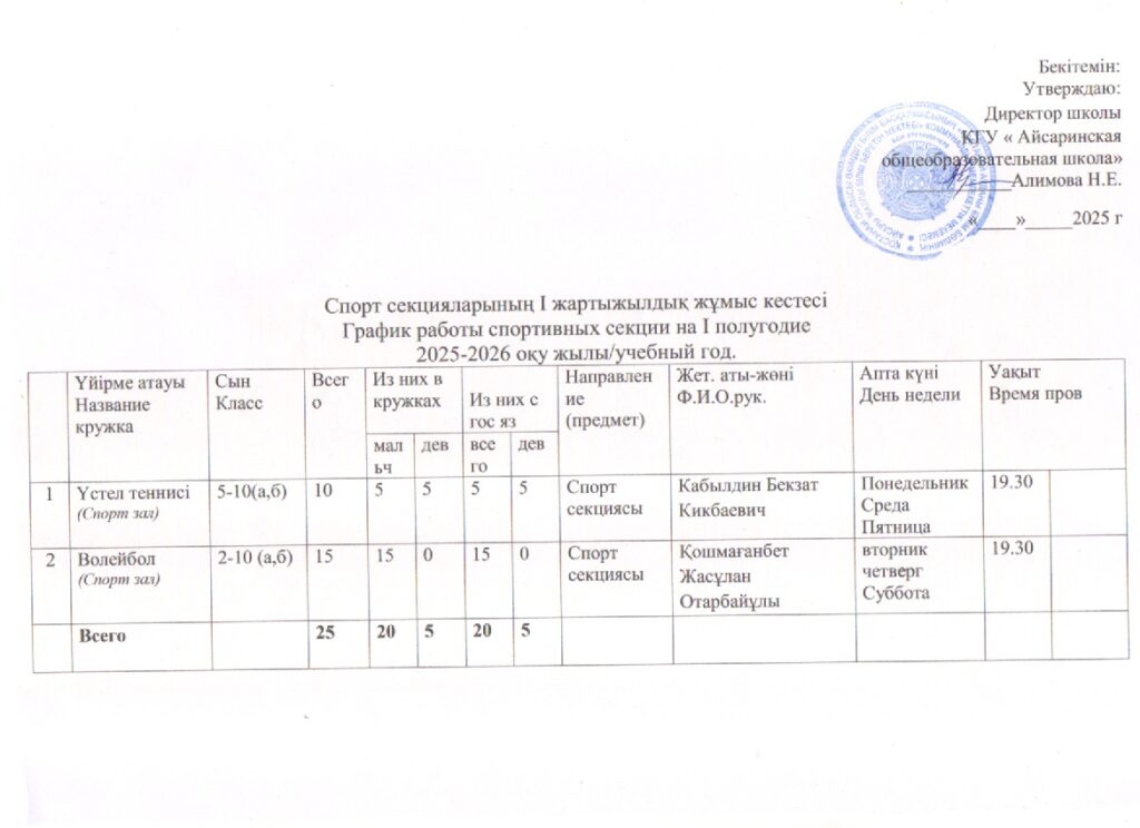 Айсары ЖББМ Өзін-өзі бағалау